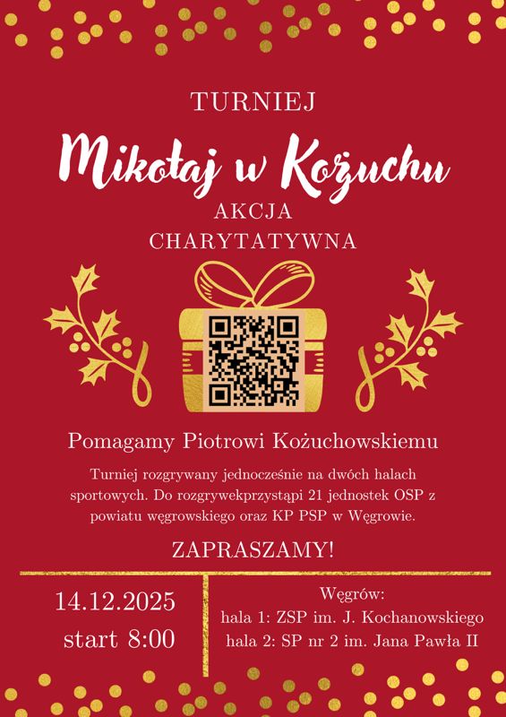 Już 14 grudnia w Węgrowie odbędzie się wyjątkowe wydarzenie – turniej „Mikołaj w Kożuchu”, którego celem jest pomoc Piotrowi Kożuchowskiemu. To kolejna inicjatywa lokalnych druhów i mieszkańców powiatu, którzy po raz kolejny udowadniają, że potrafią jednoczyć siły, gdy ktoś naprawdę potrzebuje wsparcia.