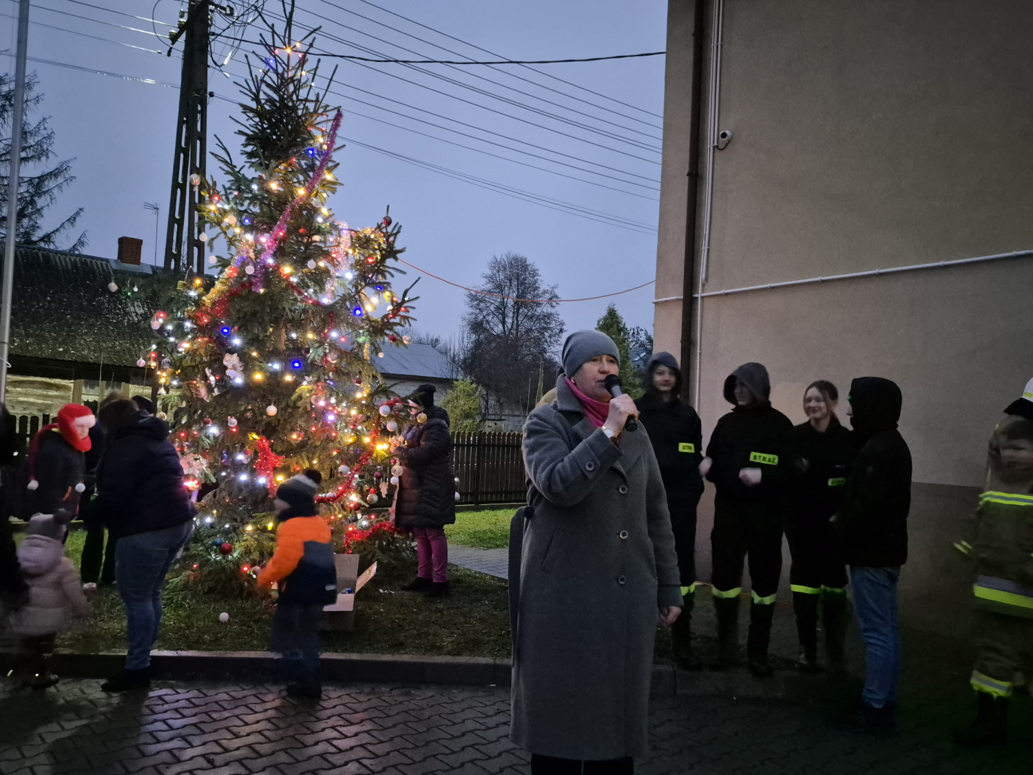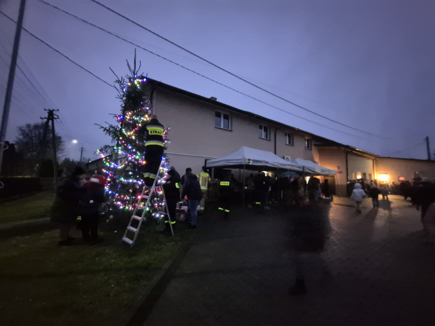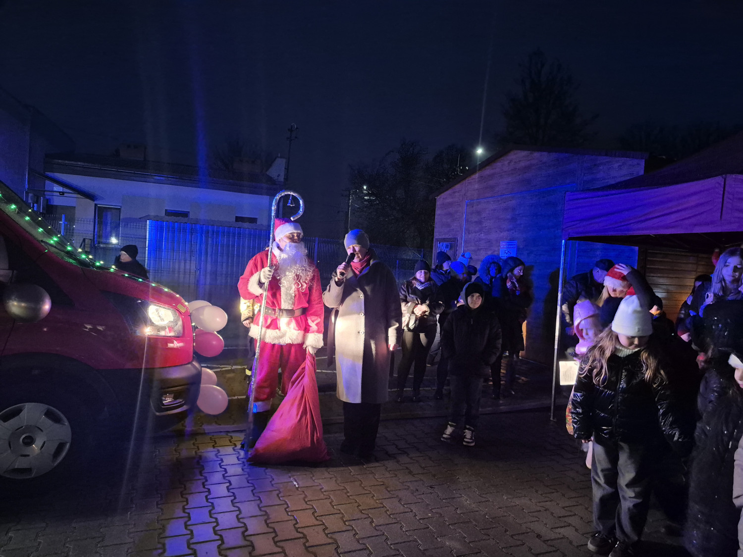 Chwilę po 16, na plac przed remizą zajechał Mikołaj, który wysiadł wprost z nowego, czerwonego wozu strażackiego marki ford transit z napędem 4x4. Dumny Mikołaj przywiózł dzieciom nie tylko radość i zaraźliwy uśmiech, ale również worek pełen prezentów, z którego każde dziecko coś otrzymało.