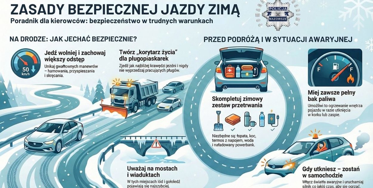Intensywne opady śniegu i śliskie nawierzchnie wymagają od kierowców szczególnej ostrożności. Przestrzeganie kilku podstawowych zasad pozwala uniknąć poślizgów, kolizji i utknięcia w zaspach.