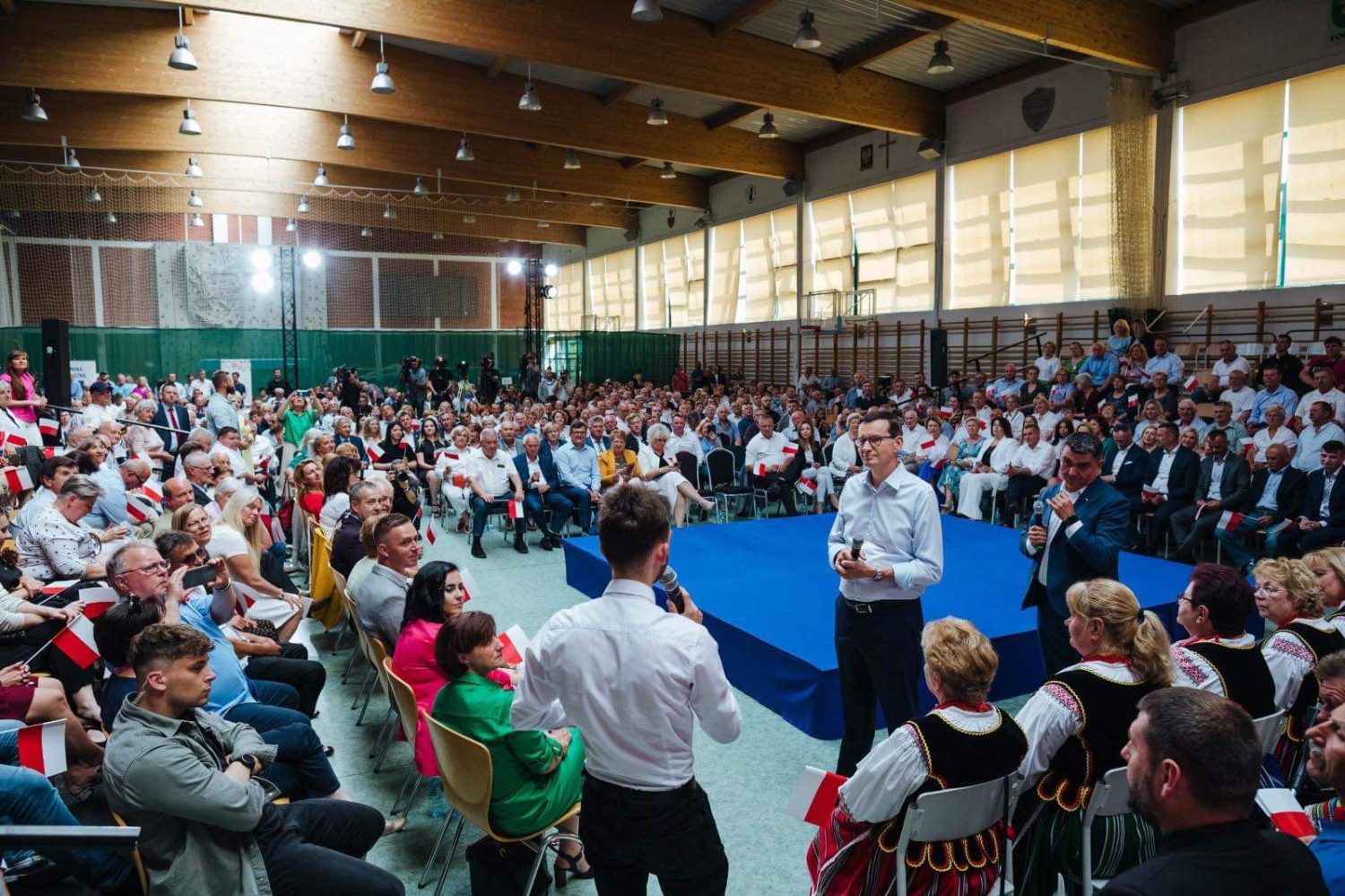 Spotkanie z szefem polskiego rządu odbyło się w ramach tak zwanej "Trasy dotrzymanego słowa", w którą wyruszyli przedkampanijnie politycy PiS. Niedzielne wydarzenie miało charakter otwarty i przyciągnęło dużą publiczność. Oprócz wystąpienia premiera, głos mogli zabrać także chętni mieszkańcy. Całe spotkanie można byłoby obejrzeć w telewizji.