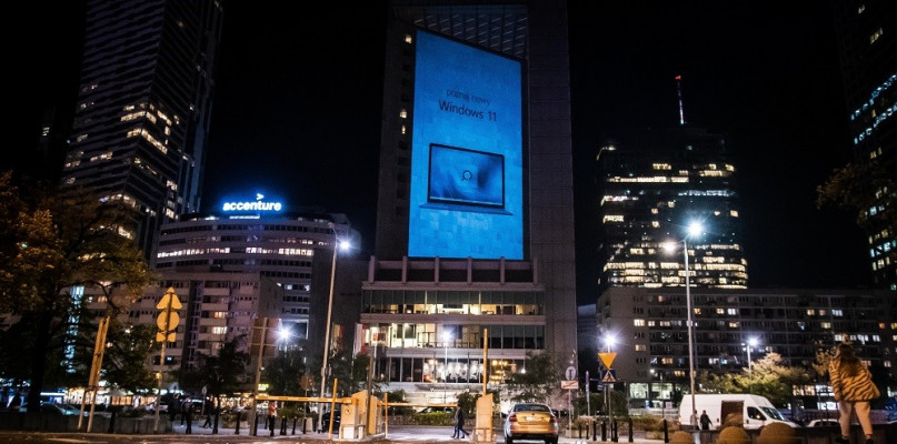 Mieszkańcy Warszawy mogli we wtorek wieczorem podziwiać specjalną animację, wyświetlaną na ścianie hotelu Intercontinental. Film został przygotowany z okazji premiery Windows 11, nowej odsłony systemu operacyjnego od Microsoft.
