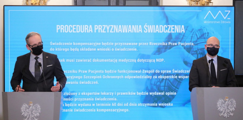 - O odszkodowanie za działanie niepożądane szczepionek przeciw COVID-19 będą mogły ubiegać się osoby hospitalizowane przynajmniej 14 dni lub te, które doznają wstrząsu anafilaktycznego - powiedział minister zdrowia Adam Niedzielski.